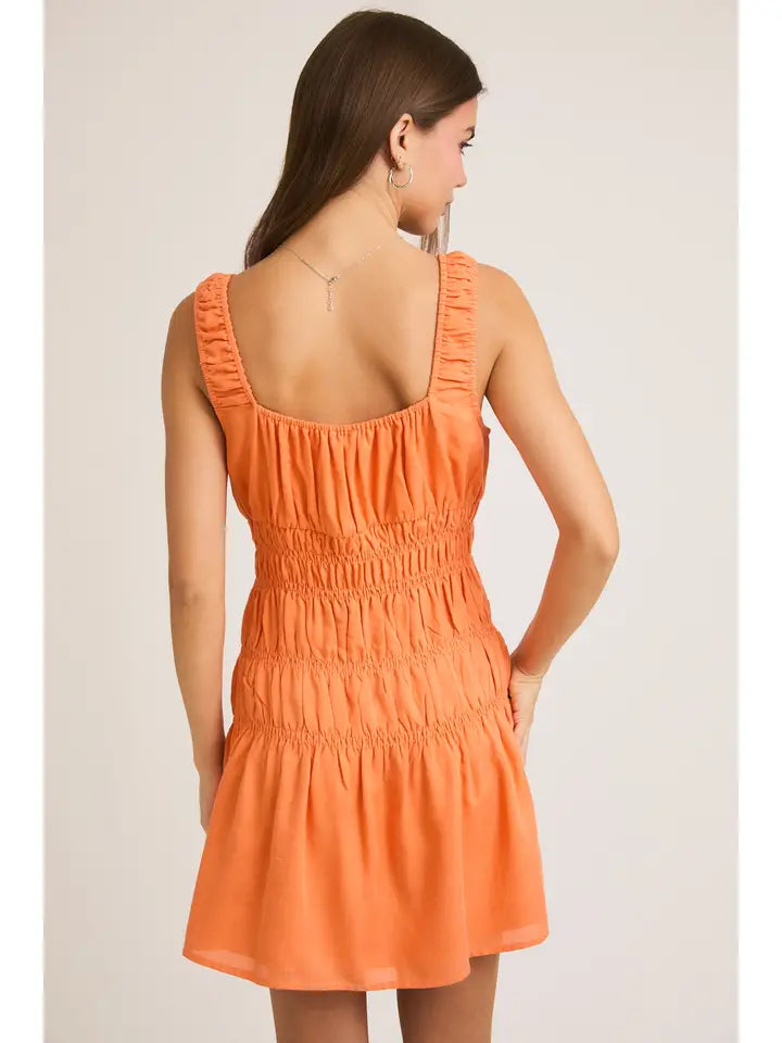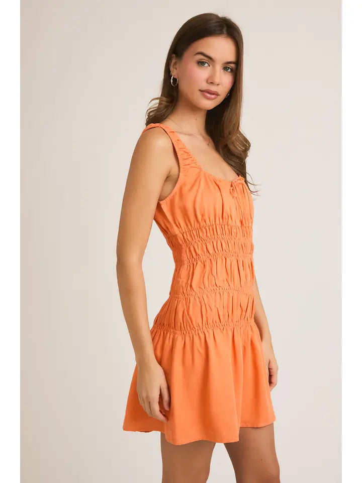 Elevate your wardrobe with this charming LE LIS mini dress that's equal parts chic and fun. The square neckline frames your shoulders beautifully, while the sleeveless cut keeps things breezy and effortless. Delicate smocking adds texture and movement, creating a flattering silhouette that moves with you. In a vibrant orange hue, this dress is your go-to for turning heads at brunch, date night, or any occasion that calls for a little extra flair. Dress it up with heels or keep it casual with sneakers—either way, you're serving looks.