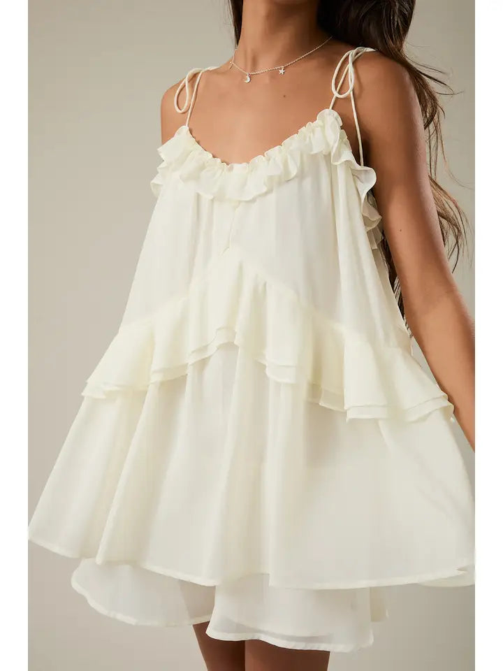 LE LIS RUFFLE TIE SHOULDER ROMPER