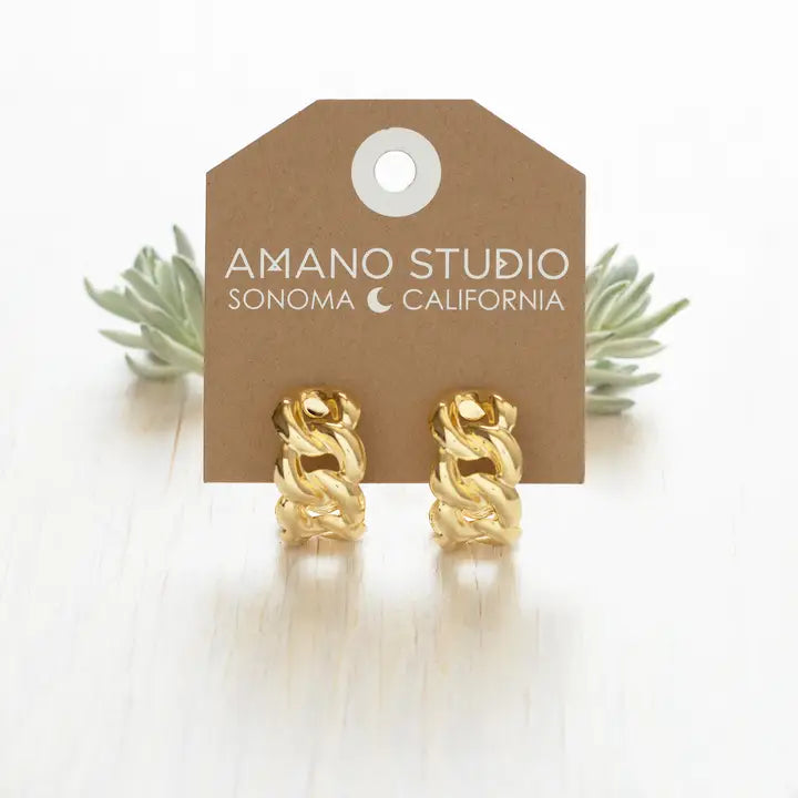 Genuine America Vintage! These bold, sexy hoops were orginally produced in the 70's. We recovered the mold and tooling and reproduced them in the original New England workshop. Made of 14k gold plated brass with surgical steel posts.