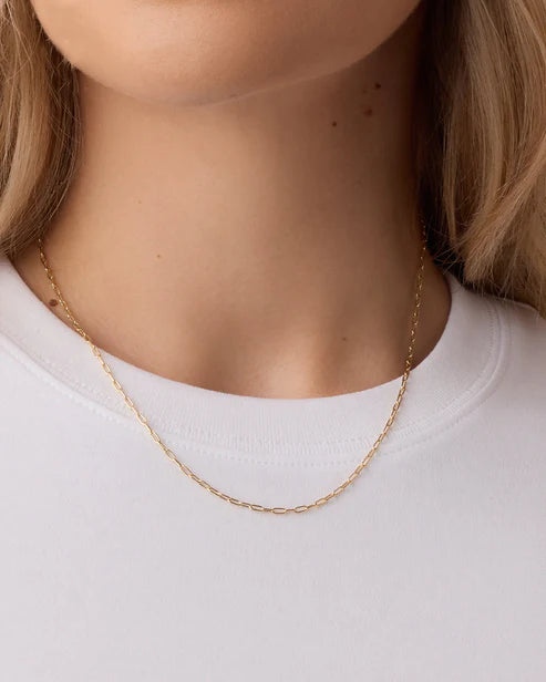 Sitting just below the collarbone, this dainty chain necklace was made to layer. Whether you choose to add charms to your chain, wear it alone, or really go for it and pair it with three or four other necklaces, this chain's lightweight feel and great look will make it a go-to piece in your rotation.