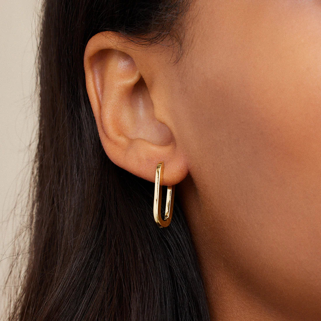 With a high-shine finish, these elongated, retro huggies are the summer earrings you will put on and never want to take off.