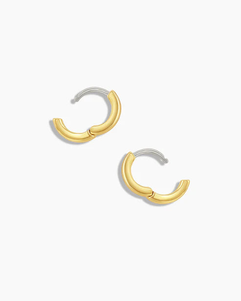 These textured gold-toned huggie hoop earrings feel more elevated than your simple everyday hoop earring. Wear in your first piercing along with matching items from the Reed Collection.
