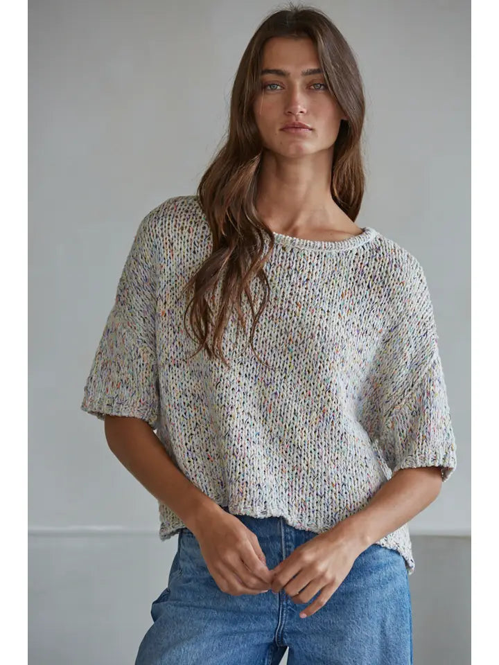 Knit Sweater Cotton Polyester Acrylic Round Neck Short Sleeve Top
