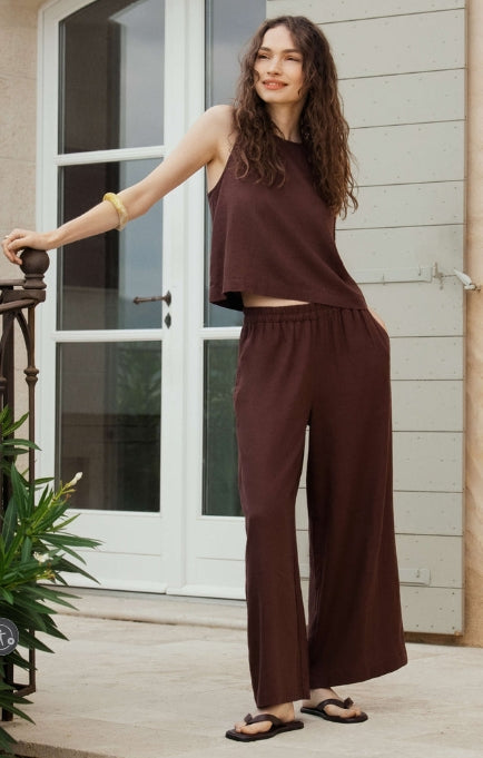 Detailed with an elastic waistband, side seam pockets, and washed linen blend fabric, these high rise pants will be a forever staple in your wardrobe. Make it a set with the Sloane Linen Top.