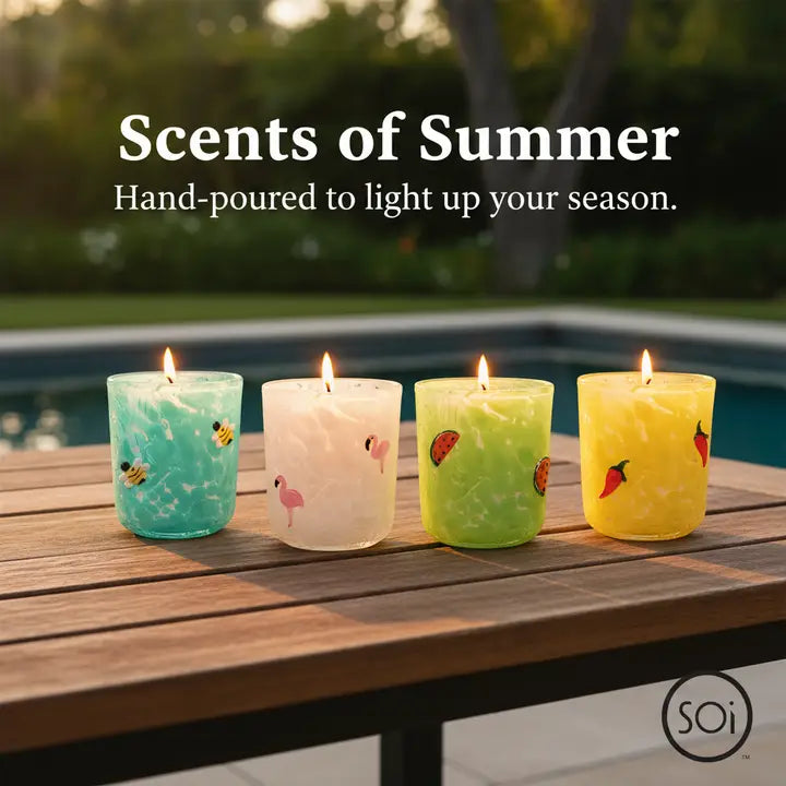 summer citrus, honeycomb A ray of sunshine in a candle. This bright whimsical blend of citrus and honeycomb is the perfect blend of sweet and fresh.