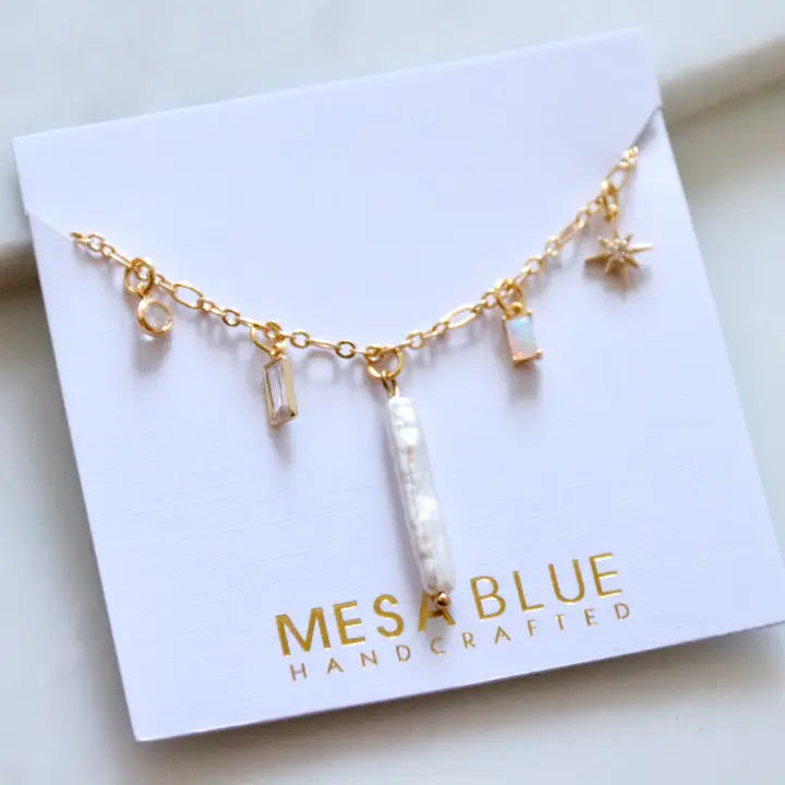 MESA BLUE PEARL OPAL CZ CHARM NECKLACE